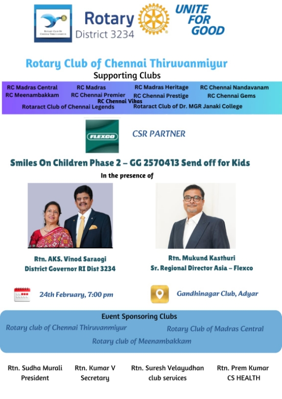 Rotary Club of Chennai Thiruvanmiyur, under District 3234, proudly . . .